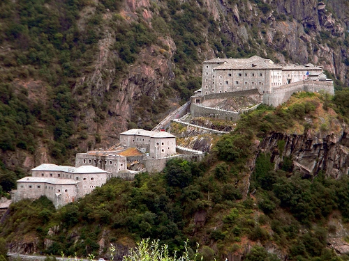 Il Forte di Bard (chiamato anche castello di Bard) è un complesso fortificato riedificato nel XIX secolo da Casa Savoia. Rimasta quasi del tutto intatto dal momento della sua costruzione, la fortezza di Bard è stata internamente restaurata e riaperta ai visitatori nel gennaio del 2006. La fortezza è composta da tre principali corpi, disposti su livelli diversi da i 400 e i 467 metri. (https://www.guideturistiche.vda.it/visite-guidate/visita-guidata-forte-di-bard/) |