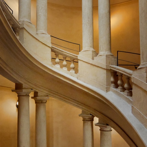 Altri tag (senza riscontro): balaustre, soffusa, affaccio, curva, gradini, simmetria, giallo, palazzo, scalone, corrimano, muro, bianco, muri, pietra.