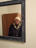 ho fotografato mia moglie che si specchiava in un vecchio specchio in un mercatino delle pulci, con in braccio il nostro yorkshire