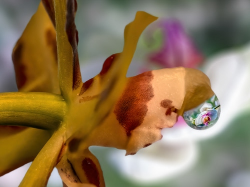 Foto dell'autore Sara Jazbar candidata al contest fotografico orchidee su Dizy. Data inserimento: lunedì 5 novembre 2018. Titolo: Giochi d'acqua tra orchidee