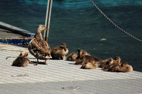Altri tag (senza riscontro): germano, paperotti, riposo, nidiata, nati, germani, lago, catena, corda, cemento, reale, piccoli, molo.