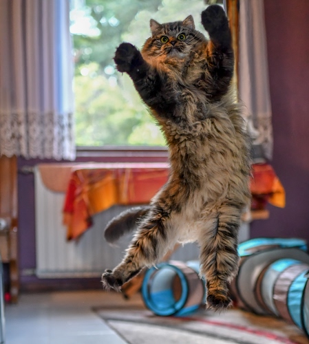 Questa speravo meglio. Una delle mie preferite (tra le mie). Foto difficilissima, fatta ovviamente all'interno, con poca luce e mettere a fuoco un gatto che salta ad f/1.4 è una vera impresa |