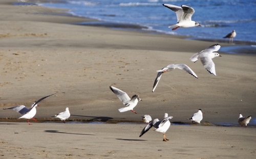 Altri tag (senza riscontro): riva, ombre, acqua, ali, battigia, stormo, bianco.