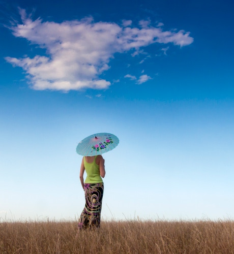 Che bella! Mi piace il contrasto tra l'ombrellino da sole e la nuvoletta di Fantozzi sopra, e poi la trovo molto poetica |