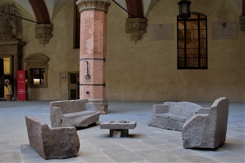 Il "Salotto di pietra' è un'opera scultorea di Sciola che, quando sono andata a Bologna anni fa, era esposta nel cortile di Palazzo D'Accursio. L'artista sardo ne aveva fatto dono al Comune dopo il successo di un progetto intitolato "Impianto sonoro scolpito". Ciao! |