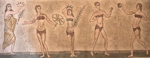Altri tag (senza riscontro): donna, velo, dee, uomini, rosso, uomo, bichini, tunica, romana, bikini, muro, danza, grecia, casale, marrone, dipinto, figure, ramo, arazzo, gioco, palme, seppia, armerina, fiore, atleti, graffito, ramoscello, villa, nudi.