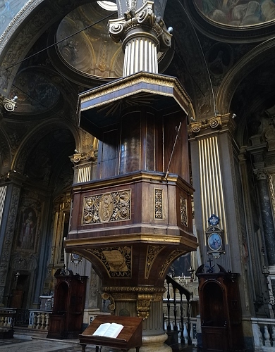 Altri tag (senza riscontro): balaustre, copertura, colonne, bianco, spirali, paracielo, dipinti, parapetto, leggìo, poligonale, capitelli, cerchi, baldacchino, statue, fregi, piattaforma, volta, volte, cappelle, confessionale, righe, intarsio.