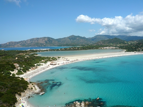 Vista dalla torre di Porto Giunco, torre di avvistamento spagnola che si trova sul versante est del promontorio di capo Carbonara, nel territorio di Villasimius.