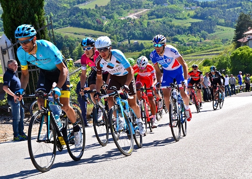21/04/2017 ore 15,17 : Michele Scarponi guida il gruppetto in testa alla corsa, sullo strappo prima del traguardo dell'ultima tappa del tour des Alpes di Trento.