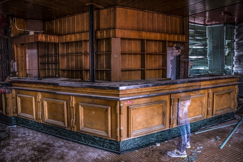 Pub abbandonato, ben poco è rimasto di ciò che era un tempo.