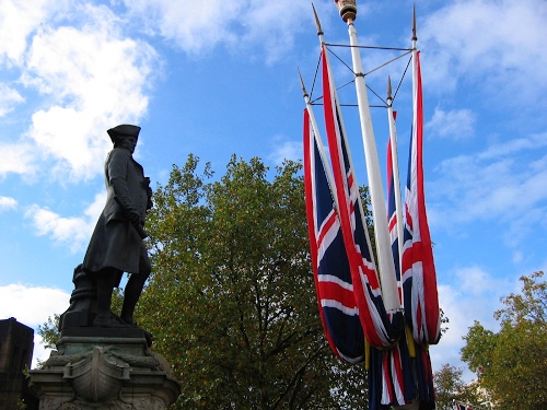 Statua e bandiere lungo il Mall, in occasione di una visita di stato.