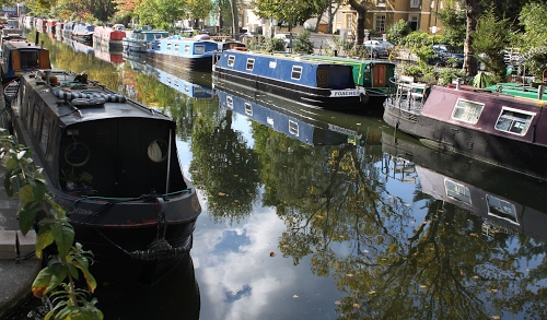 Boat houses nel quartiere detto "Little Venice", attorno all'incrocio tra il braccio di Paddington del Grand Union Canal e il Regent's Canal.