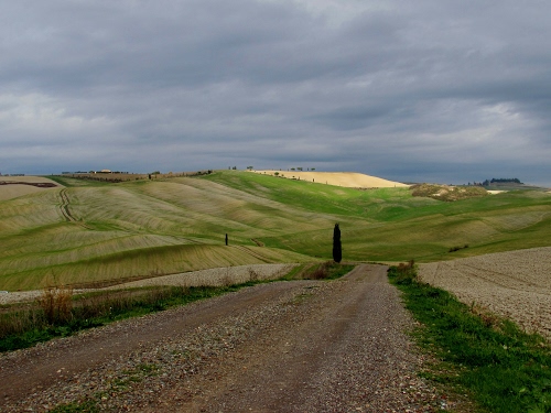 La preferisco alla tua più votata, è molto ben costruita. La strada che fa condurre lo sguardo verso la collina chiara e le varie tonalità di verde fanno da cornice. Forse tagliare un pezzetto del cielo sopra la renderebbe una perfetta rappresentazione della regola dei terzi. |