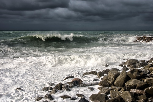 Altri tag (senza riscontro): spruzzi, pietra, mareggiata, nero, verde, orizzonte, agitato, riva, massi, nuvoloni, paesaggio.