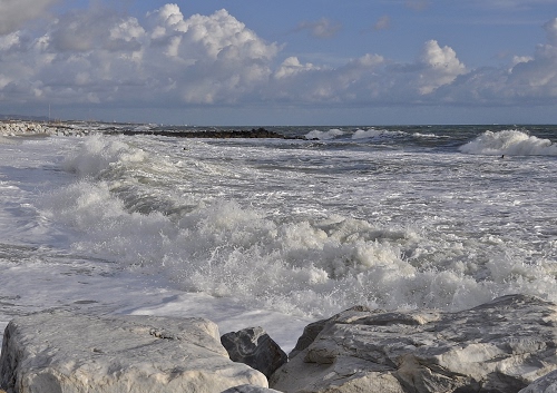Altri tag (senza riscontro): mareggiata, spuma, orizzonte, cavalloni, agitato, riva, mosso, roccia, celeste, flutti, cresta.