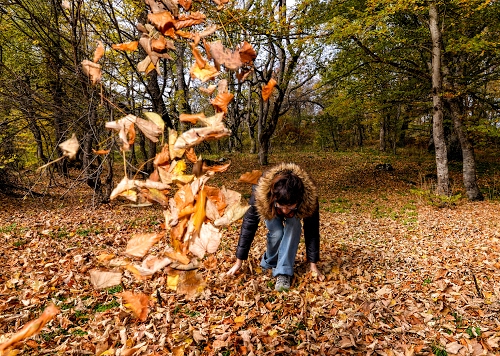 Foto dell'autore Diana Cocco candidata al contest fotografico fogliame su Dizy. Data inserimento: mercoledì 1 gennaio 2020. Titolo: lanciando il fogliame a Campo di Giove