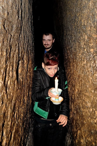 A lume di candela nei cunicoli di Napoli sotterranea.
