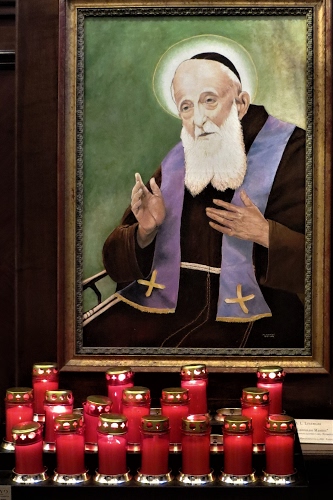 @Kermit effettivamente beato Padre Marco d'Aviano è conosciuto più dalle nostre parti perchè è nato ad Aviano, nel Veneto e anche a Vienna dove è sepolto all'interno della Kapuzinerkirche. Di solito è rappresentato con una croce in mano in quanto ha combattuto contro la minaccia dei turchi che avevano lambito le ns.zone. Penso che il santo della foto sia Padre Pio. |
