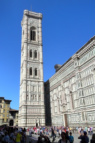 sarà pure di marmo bianco,io però siccome lo fotografo da questa distanza e con questa luce, nell'insieme vedo un bel grigio magari chiaro che mi contrasta con l'azzurro del cielo. nessuna correzione di colori è stata effettuata.qui il bianco lo trovi solo nelle magliette delle persone, ed è ben diverso dal colore del marmo attuale. ciao edo |
