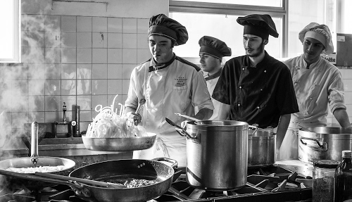 Altri tag (senza riscontro): cuoco, istantanea, vapori, cucinare, nero, lavandino, uomini, bianco, barattoli, gas, camici, fumi, allievi, cibo, pentola, padella, studenti, alberghiero, grembiuli, alluminio, saltata, saltare, insegna, uniforme, scheff, mestoli, scuola, fornello, manici.