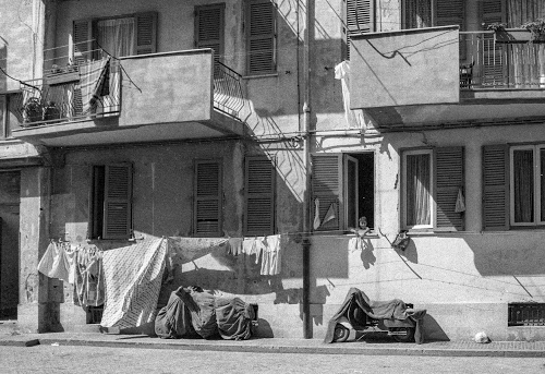 Altri tag (senza riscontro): marciapiede, terrazzi, balaustre, hinterland, lenzuolo, grigio, teli, motociclette, monocromatico, porte, teloni, scooter, abbandono, città, lenzuola, appeso, fuoricittà, facciata, sobborgo, imposte, coperte, due, vasi, periferia, ombre, edificio, tubi.