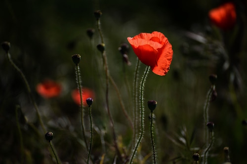 Bello questo papavero illuminato dal sole con lo sfondo scuro ![]() |