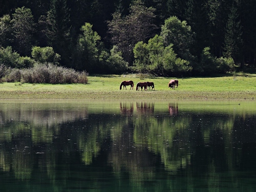 Foto dell'autore mavi80 candidata al contest fotografico quadrupede su Dizy. Data inserimento: lunedì 9 novembre 2020. Titolo: Cavalli al lago di Fusine