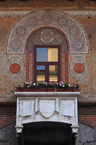 Ottima immagine. Bello il riflesso dai colori "caldi" sui vetro della porta e ottimo il contrasto del balcone e gli affreschi della parete ![]() |