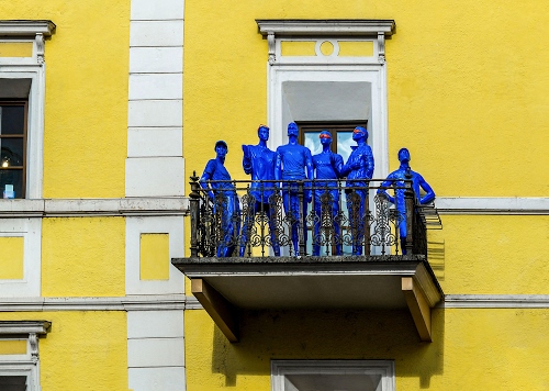 Foto dell'autore Diana Cocco candidata al contest fotografico balconi su Dizy. Data inserimento: mercoledì 30 dicembre 2020. Titolo: Manichini Blu sul balcone a Bressanone