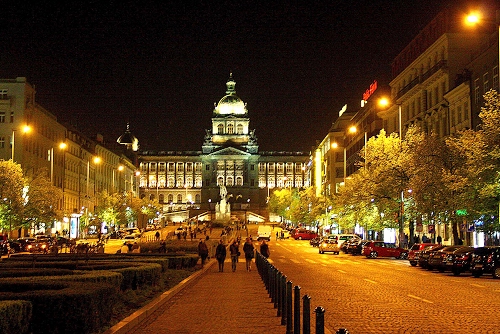 Tag: notturno, alberi, lampioni, strada, luci, finestre, cupola, persone, palazzi, viale, auto, siepi, città, notte, automobili, palazzo, scorcio, macchine, praga.