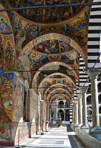 E'il portico della chiesa del monastero di Rila in Bulgaria |