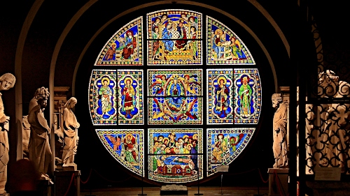 Giovanna rispondo molto volentieri alla tua domanda dicendo che la vetrata si trova nel Museo dell'Opera del Duomo di Siena. Posso dire che sicuramente vale la pena passare qualche giorno in vacanza a Siena e dedicare un po' di tempo a visitare l'insieme dell'Opera (Duomo, Battistero, Cripta e Museo). |