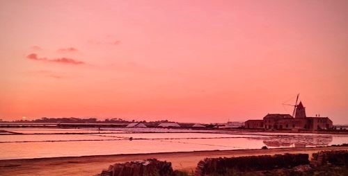 Foto dell'autore lumagi candidata al contest fotografico saline su Dizy. Data inserimento: domenica 5 settembre 2021. Titolo: Tramonto rosso