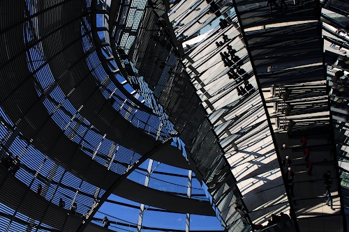 Scorcio dell'interno della cupola del Reichstag a Berlino.