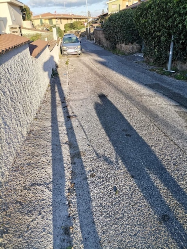 Un uomo sui trampoli col suo gigantesco molosso? Ma no,solo il quotidiano scherzo del Sole quando si risveglia.