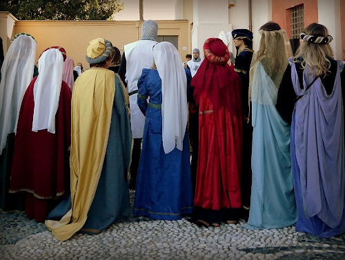 Altri tag (senza riscontro): gruppo, nero, uomini, piegabile, evento, costume, viola, maschere, dietro, piegature, finestre, pieghettata, piega, medioevali, pieghettato, albero, corte, acconciature, rappresentazione, mantelle, cortile, capelli, multicolore, figuranti, stoffe, manifestazione, blu, basolato.