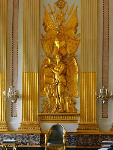 Rilievo in stucco dorata di Tito Angelini e Tommaso Arnaud , situato nelle pareti frontali della Sala del Trono, Reggia di Caserta.