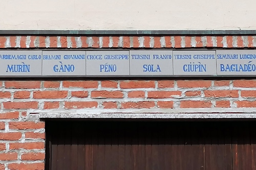 piastrelle con soprannomi di clienti di una vecchia osteria.