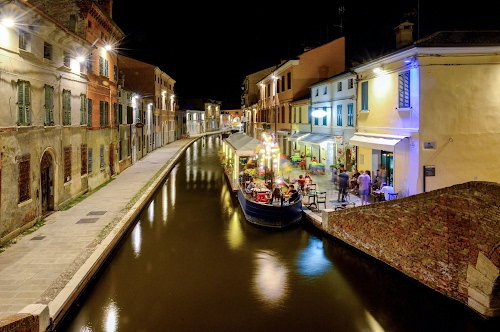 Foto dell'autore Diana Cocco candidata al contest fotografico canale su Dizy. Data inserimento: mercoledì 28 giugno 2023. Titolo: Canale di notte a Comacchio
