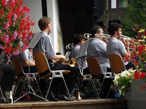 Altri tag (senza riscontro): tromboni, trombone, pianta, fiorita, suonare, grigio, musicali, potaspartiti, treppiedi, sedersi, ragazzi, seduto, divisa, cornette, trombe, leggio, pedana, sedere, persone.