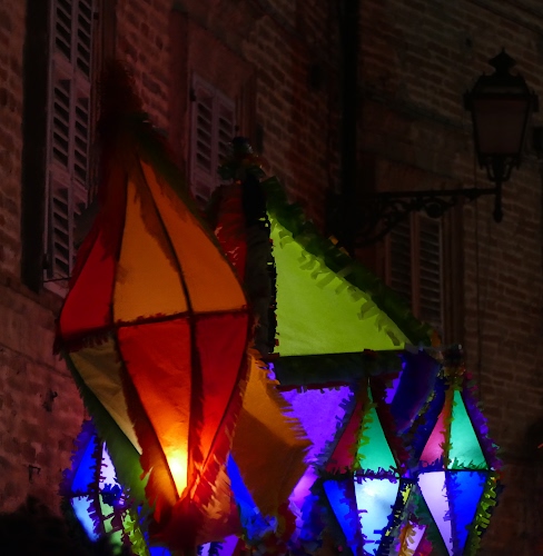 I muccule' sono delle lanterne luminose multicolori costruite dagli artigiani locali, montate su una canna ancora verde a forma di rombi a più facce , rivestite di carta velina di colori diversi.All'interno di esse, attraverso una feritoia si inserisce una candela che illuminerà con la sua luce il buio del Carnevale.
