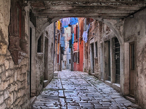 Bella la pavimentazione, l'arco, l'edicola, le travi, i panni, mi piace! |