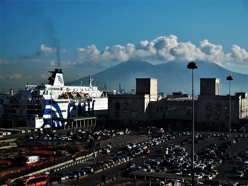 Foto dell'autore Marina Patanè candidata al contest fotografico paesaggi su Dizy. Data inserimento: sabato 14 ottobre 2023. Titolo: Porto di Napoli con Vesuvio