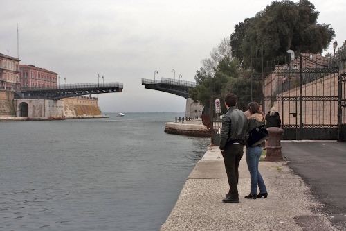 Il ponte girevole di Taranto. Si apre per far transitare nel canale navigabile navi di grandi dimensioni.