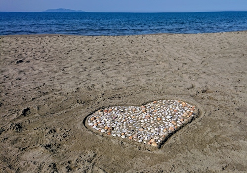 Foto dell'autore marivodo candidata al contest fotografico calma su Dizy. Data inserimento: martedì 18 giugno 2024. Titolo: La calma di una spiaggia deserta con cuore di conchiglie