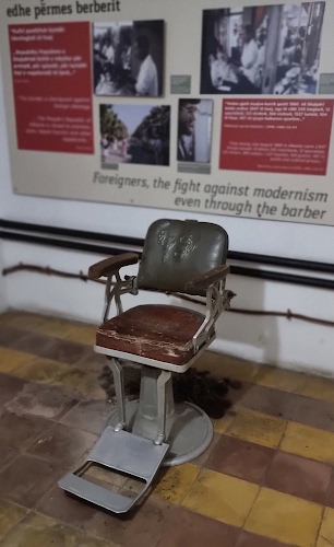 La vecchia sedia da barbiere all'interno del bunker di Tirana