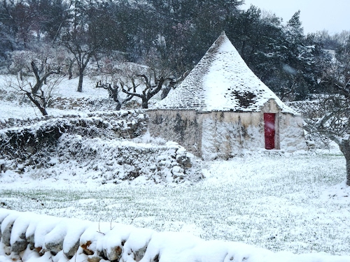 Particolare la struttura di questo trullo, bello con la neve ![]() |