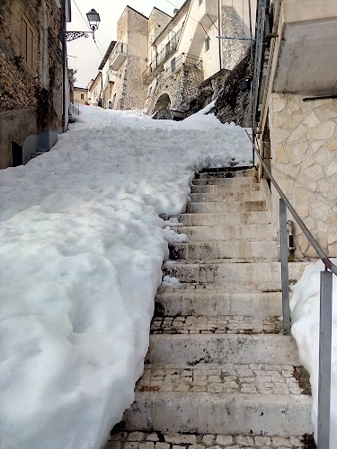 Foto dell'autore antonio baglioni candidata al contest fotografico scalinata su Dizy. Data inserimento: domenica 5 gennaio 2025. Titolo: Scalinata sotto la neve a Campo di Giove