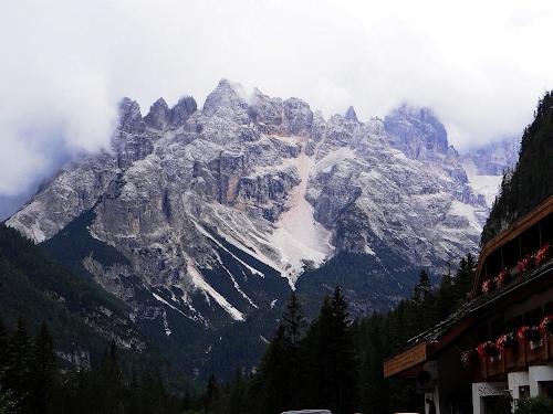 Monte Cristallo, visto dalla cappella Landro.Strada Statale 51 di Alemagna