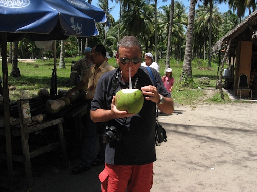 sono in Thailandia e sto bevendo il latte di un cocco staccato dalla pianta